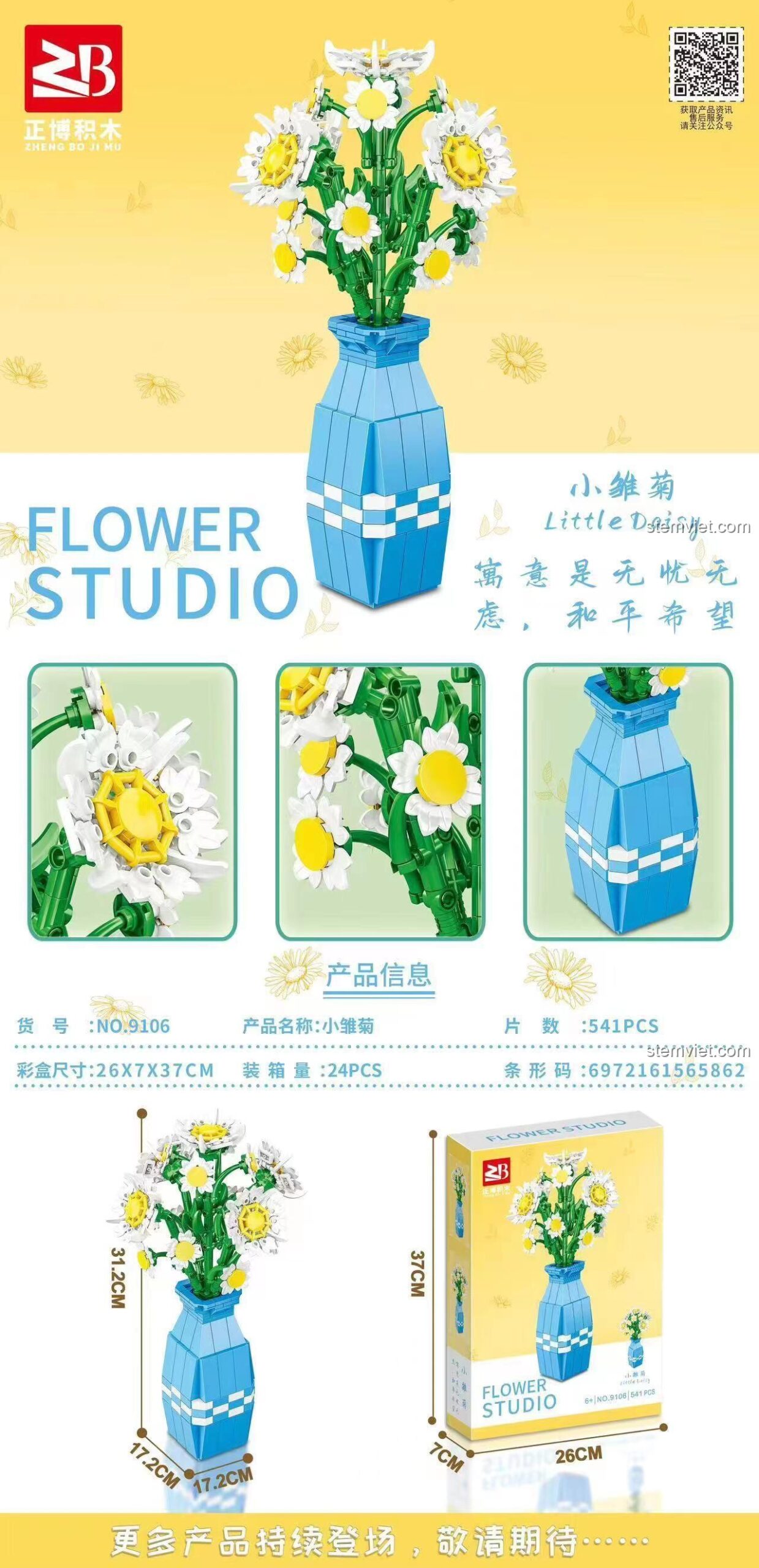 🎨 Thiết Kế Tinh Tế Đến Từng Chi Tiết Của đồ chơi mô hình Bình hoa cúc họa mi 9106?