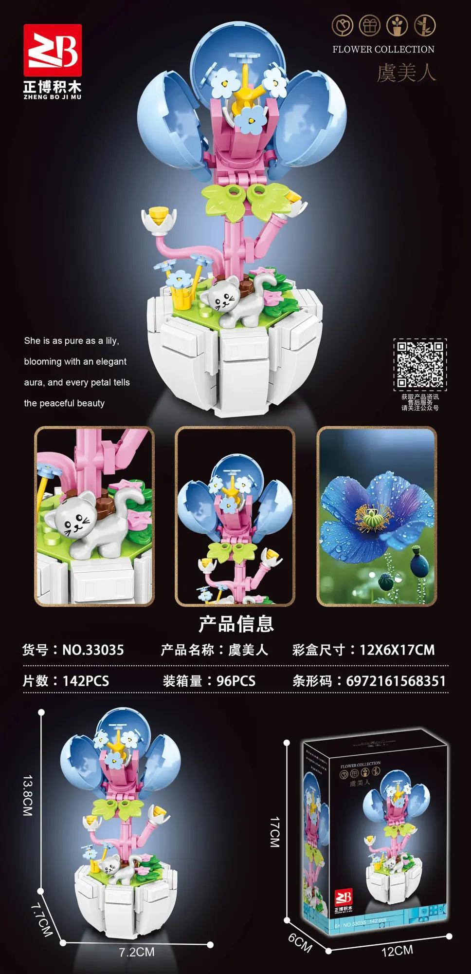 Zhengbo 33035: Bộ Lắp Ghép Hoa Anh Túc (142 Mảnh) – Vẻ Đẹp Thanh Bình
