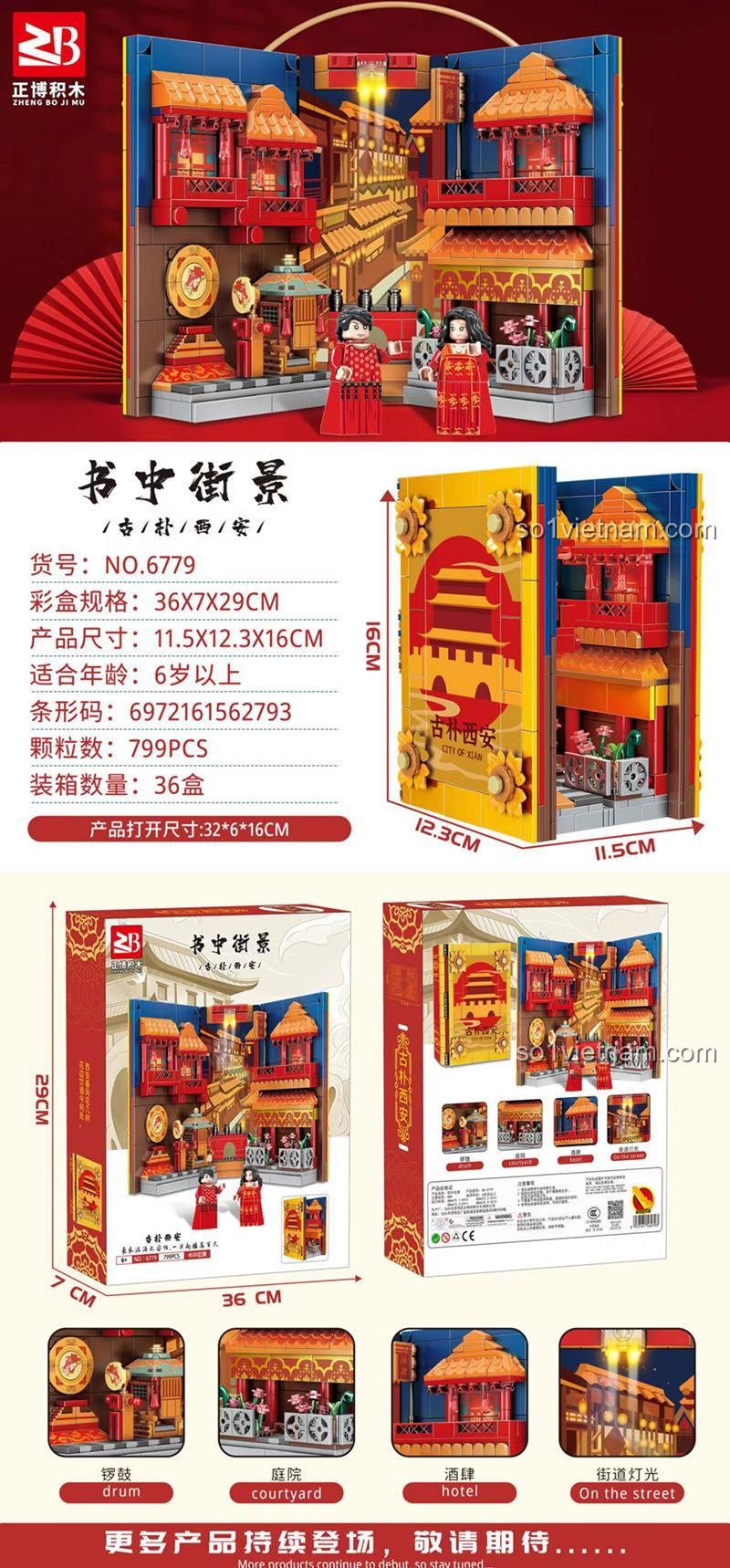 Bộ đồ chơi mô hình Giá đỡ sách kiến trúc cổ Zhengbo 6779 sẽ khiến bạn phải trầm trồ trước sự tỉ mỉ trong từng chi tiết. Với [Màu sắc chủ đạo] Đỏ, Vàng, Xám và Xanh dương, mô hình tái hiện chân thực một con phố cổ Tây An với những mái ngói cong vút, những bức tường gạch cổ kính và những chi tiết trang trí tinh xảo. Kích thước mô hình sau khi hoàn thành là 11.5 cm (Dài) x 12.3 cm (Rộng) x 16 cm (Cao), vừa vặn để đặt trên kệ sách hoặc bàn học. Mỗi mảnh ghép đều được thiết kế để khớp nối hoàn hảo, tạo nên một tổng thể hài hòa và sống động. Hai minifigures đi kèm, trong trang phục truyền thống, càng làm tăng thêm vẻ đẹp và câu chuyện cho mô hình. Đây không chỉ là một bộ lắp ghép, mà là một tác phẩm nghệ thuật thu nhỏ, thể hiện sự khéo léo và tinh tế của kiến trúc Trung Hoa cổ đại.