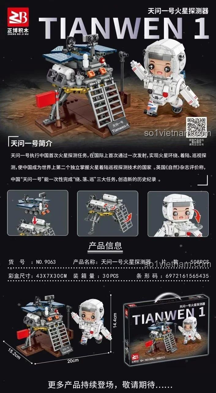 Zhengbo 9063: Bộ Lắp Ghép Tàu Thăm Dò Sao Hỏa Thiên Vấn 1 (508 Mảnh Ghép) – Khám Phá Vũ Trụ