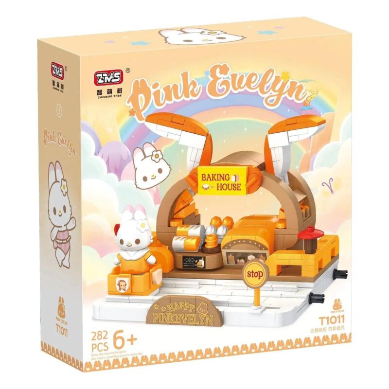 Bộ lắp ráp ZMS T1011-3 Pink Evelyn cho phép bé lắp ráp thành 4 mô hình khác nhau: Tiệm Bánh Ngọt, Cửa hàng Kem, Cửa hàng Quần áo và Nhà Thỏ.