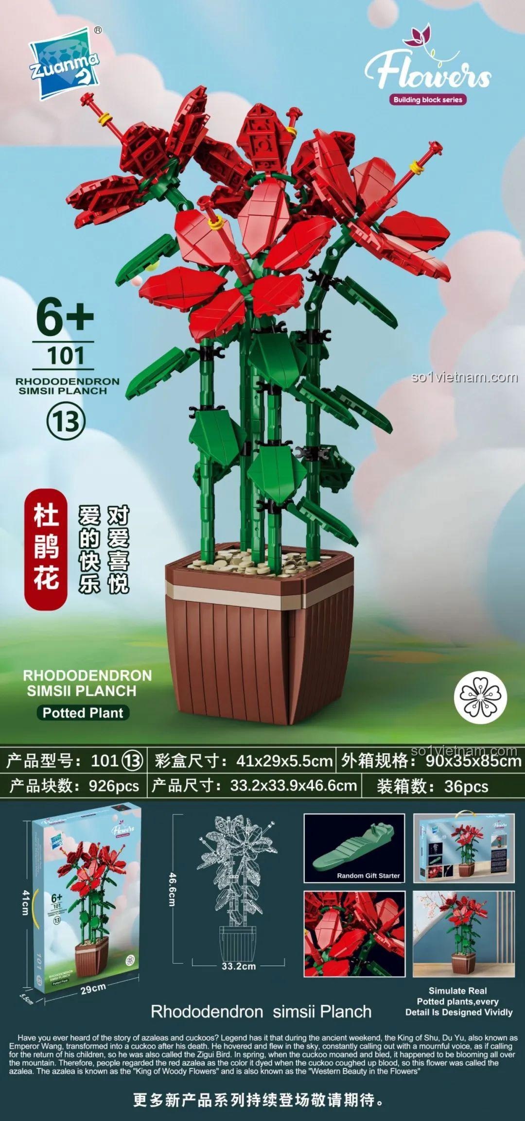 Chào mừng bố mẹ và các bé đến với thế giới của những bộ lắp ghép mô hình tinh xảo! Hôm nay, chúng ta sẽ cùng nhau khám phá một kiệt tác thiên nhiên thu nhỏ: Chậu hoa Đỗ Quyên Zuanma 101-13. Với 926 mảnh ghép mini block, bộ đồ chơi này mang đến một trải nghiệm lắp ráp đầy thử thách nhưng cũng vô cùng bổ ích, giúp bé gái từ 6 tuổi phát huy tối đa sự sáng tạo và khéo léo của mình.