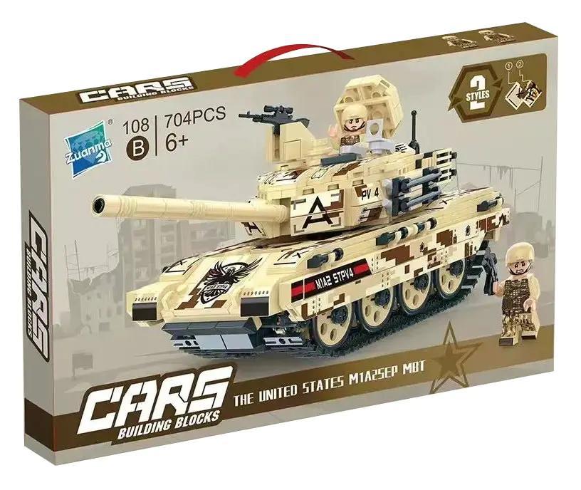 Xe tăng chiến đấu chủ lực M1A2SEP Zuanma 108B có tháp pháo xoay 360 độ, nòng pháo nâng hạ linh hoạt, cửa khoang lái mở được và đi kèm 2 minifigure chiến binh, mang đến trải nghiệm lắp ráp và chơi vô cùng sống động.